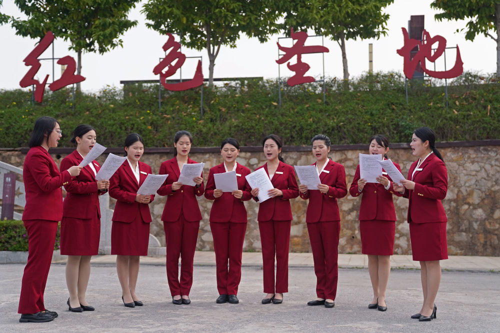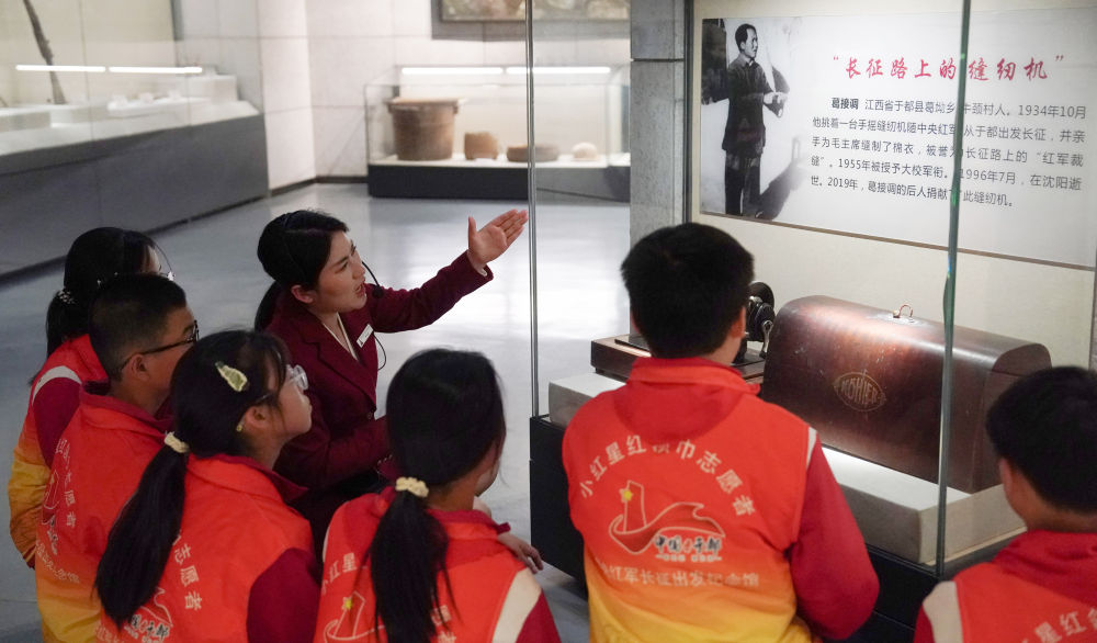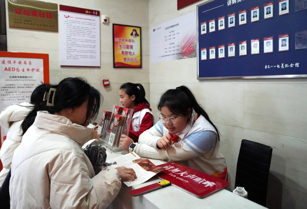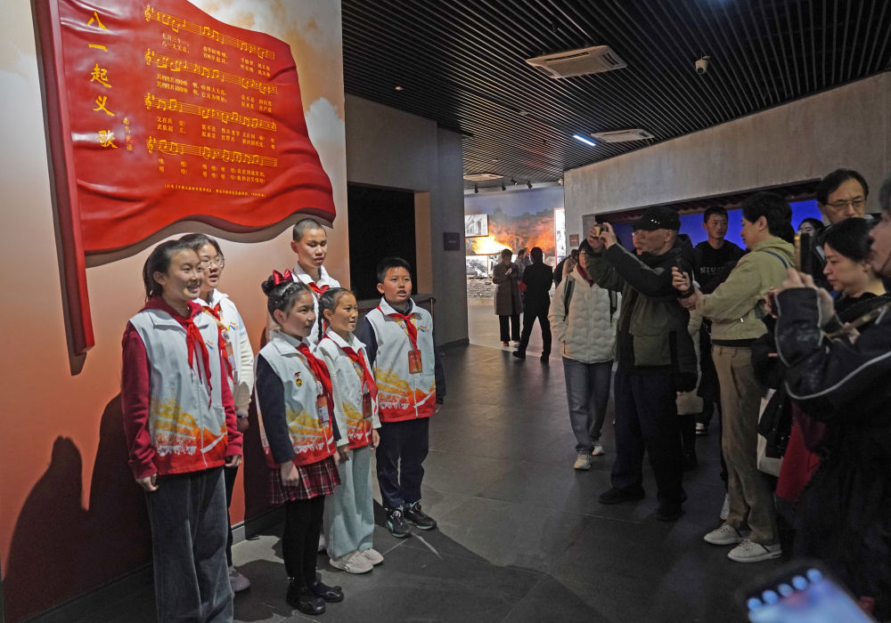 2025年3月28日,6名小讲解员在南昌八一起义纪念馆为观众演唱民谣《八一起义歌》。