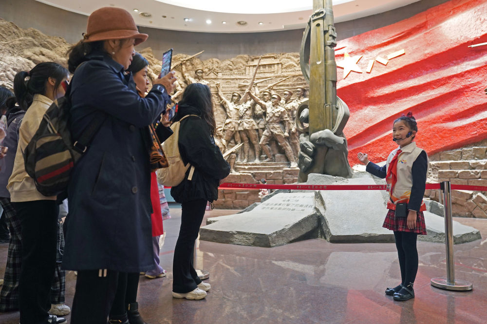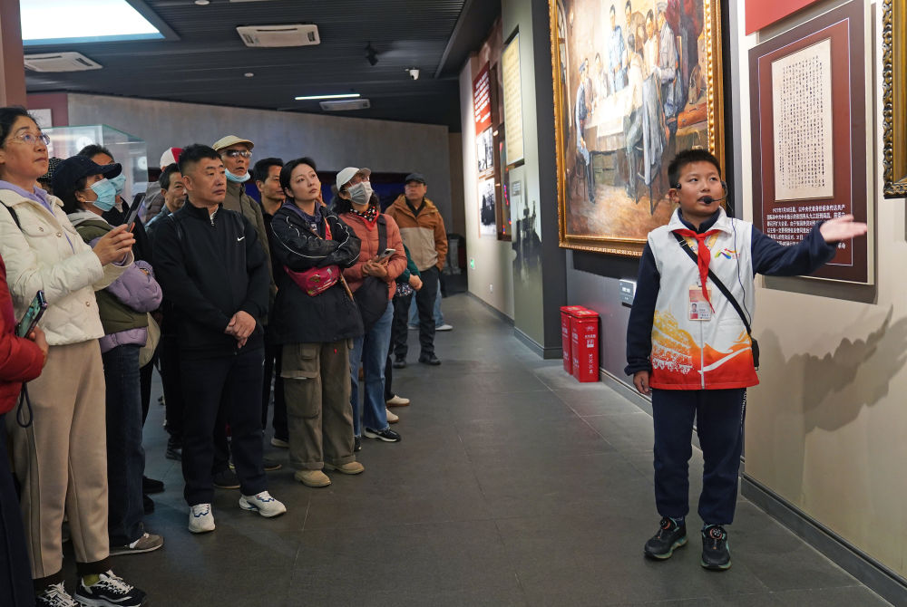 2025年3月28日,小讲解员范奕辰在纪念馆为游客讲解。