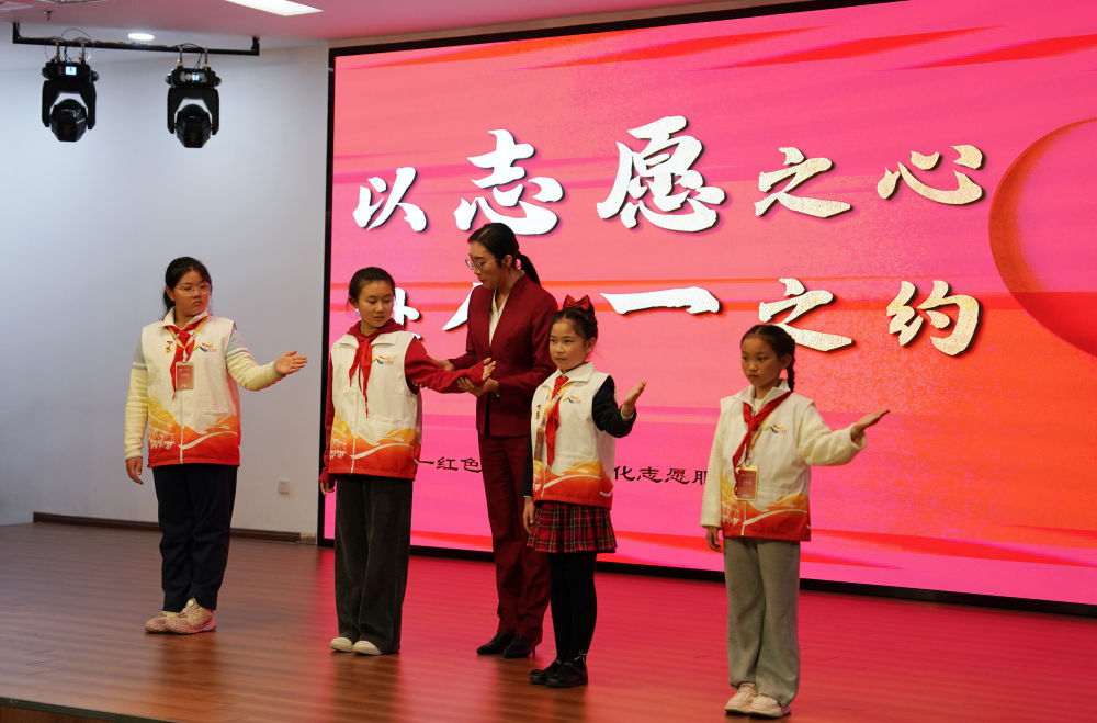 2025年3月26日,钟雪燕为小学生志愿者培训讲解要点。