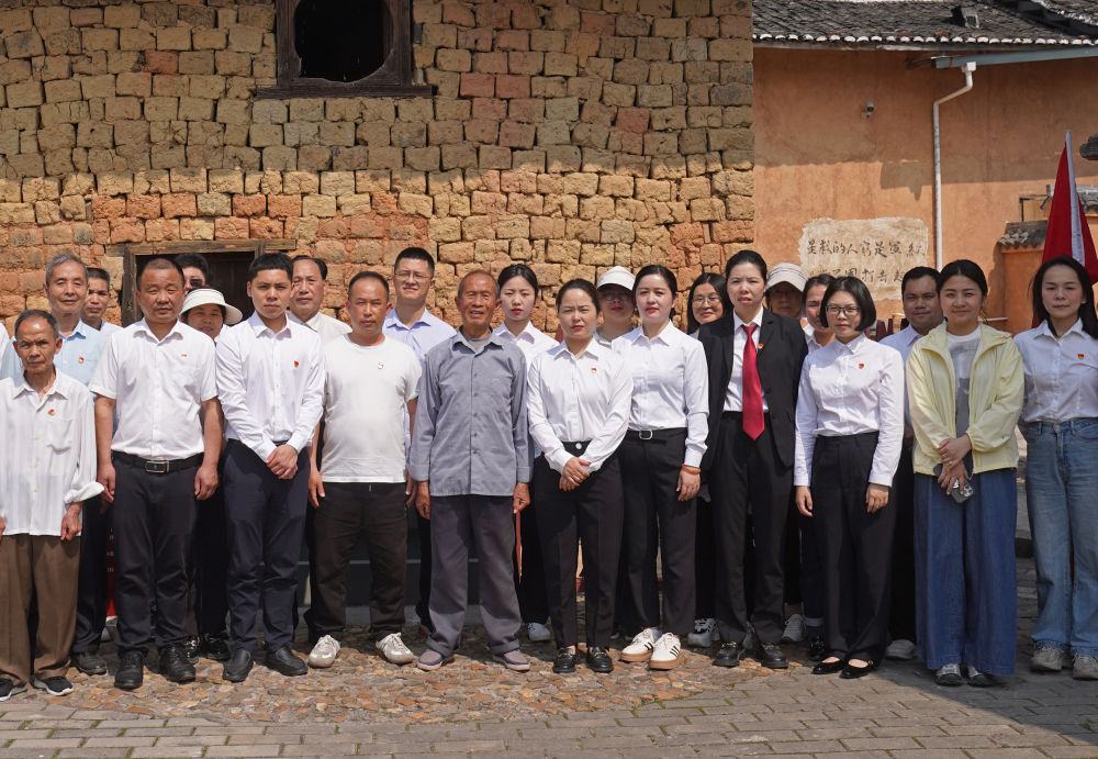 2025年3月27日,在大柏地村大柏地战斗战场遗址,刘承汉和游客合影留念。