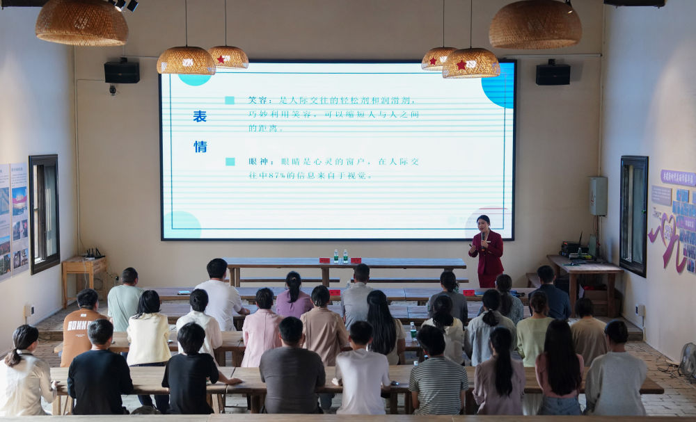 在于都县车溪乡坝脑村,钟雪燕给志愿者培训讲解礼仪(2025年3月26日摄)。